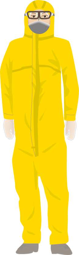 近年では、石綿除去、放射性物質の除染、鳥インフルエンザ、新型コロナウイルス感染症等の対応作業において有害粉じん対策として化学防護服が注目されました。また、2024年4月からは、「労働安全衛生法の新たな化学物質規制」で、保護衣(防護服)、保護手袋(防護手袋)等の適切な保護具の使用が義務化され、防護服をはじめとした保護具の適切な選択、保守、管理等を行う保護具着用管理責任者の選任も必要となりました。