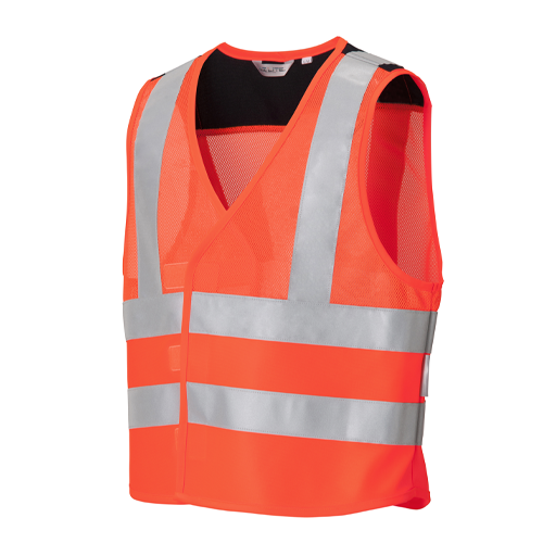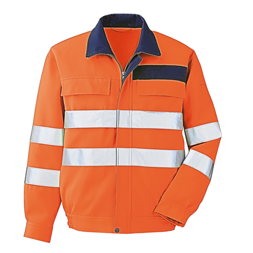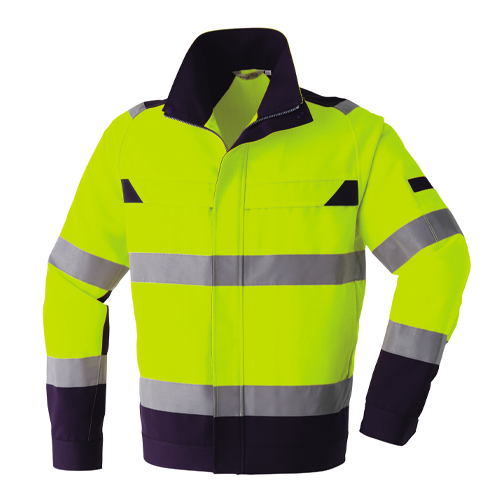 蛍光生地及び再帰性反射材を使用し、着用者の存在を周囲に認識させやすくすることで、安全性を向上させるために使用する服等です。